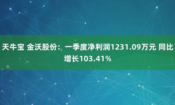 天牛宝 人民财讯4月24日电,金沃股份(300984)4月24日晚间发布2025年第一季度报告,第一季度实现营业收入2.96亿元,同比增长10.65%;净利润1....