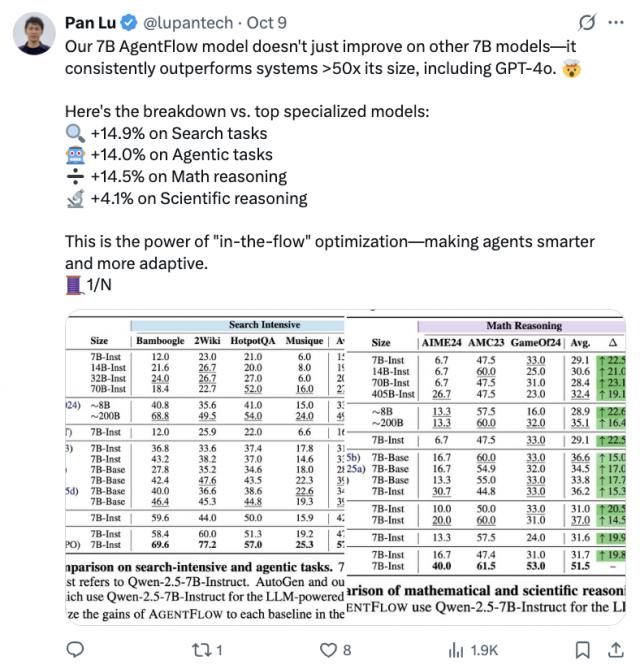 AgentFlow,是一种能够在线优化智能体系统的新范式,可以持续提升智能体系统对于复杂问题的推理能力。